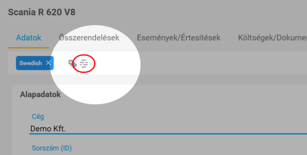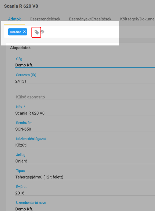 A címkét a létrehozást követően azonnal alkalmazhatod. Az eszköz, jármű, személy és POI adatlapon, a címkesávban a címkefelhőt megnyitva választhatod ki az alkalmazni kívánt címkét.