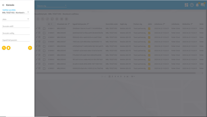 - Szállítási szerződés: csak olvasható, nem változtatható adat, melyet automatikusan kapnak a kártyák a lista szűrőben beállított szerződés adataiból.