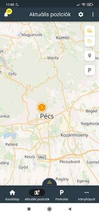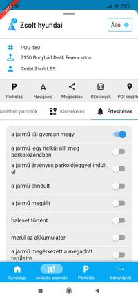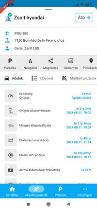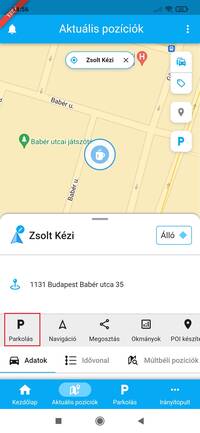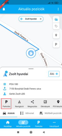 - a parkolózónában, vagy annak közelében álló jármű adatlapján, a P betűre bökve.