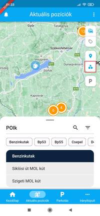Ezzel egy időben a kapcsoló alatt megjelenik egy geometriai ábrákkal jelölt gomb is. Erre a gombra koppintva nyílik meg a POI csoportok, és a POI-k kezelésére szolgáló panel.