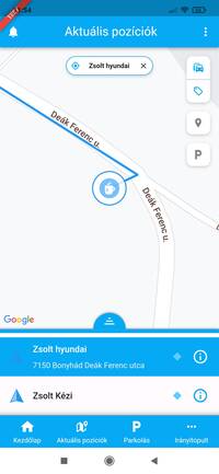 Ha egy adott eszköz pozíciójára vagy kíváncsi, a listában koppints rá, ekkor a térkép az eszközt fókuszba helyezi, ráközelít és a listában kék színnel kiemeli a kijelölt elemet. Ezzel egy időben az eszköz fölött megjelenik a nevet tartalmazó címke, amely mozgás esetén a pillanatnyi sebességet is tartalmazza. Ilyenkor a térkép követő módba kapcsol, a kiválasztott eszközt mozgás közben fókuszban tartja.