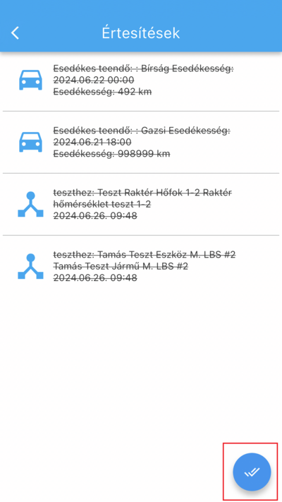 A felső lécen annak a funkciónak a nevét láthatod, amit épp használatba veszel, továbbá a bal felső sarokban az értesítésekhez használt csengettyű összegzi a beérkezett értesítéseidet. A dupla pipa gombbal tudod megtekintetté jelölni az összes értesítést.