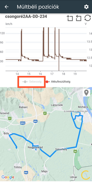 A múltbéli pozíciók funkcióban eszközeid korábbi útvonalait részletesen, a beküldött adatokkal együtt vizsgálhatod. Mindezt egy hibrid, grafikonnal kiegészített térképes felületen teheted meg. A funkciót nem csak az irányítópultból nyithatod meg,