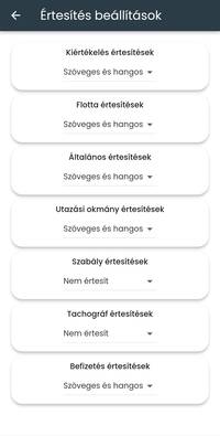 Értesítés beállítások